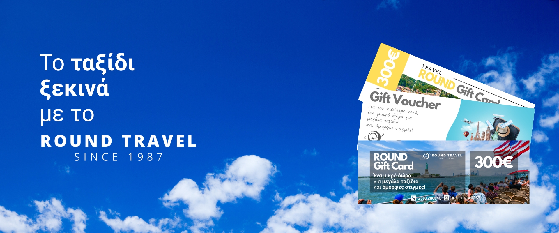 Η Δωροκάρτα μπορεί να εξαργυρωθεί αποκλειστικά για την αγορά υπηρεσιών του Round Travel, όπως:-