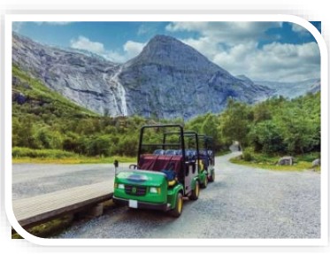• Επίσκεψη στον παγετώνα Μπρίκσνταλ (Briksdal), και στην παγετωνική λίμνη με ειδικά ηλεκτροκίνητα οχήματα Troll Cars μέσα από μια πραγματικά υπέροχη διαδρομή.