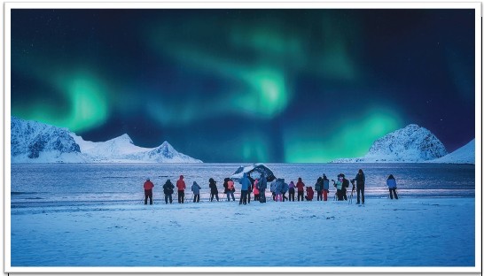 Αρκτικό Κύκλο και πάμε στο ιστορικό λιμάνι Τρόμσο. Επισκεπτόμαστε το Πολικό Μουσείο, απολαμβάνουμε βόλτα με φουσκωτό κυνηγώντας θαλασσαετούς, σαφάρι με έλκηθρα που τα σέρνουν εντυπωσιακά σκυλιά χάσκι και σαφάρι με snowmobiles και από το Τρόμσο παίρνουμε την πτήση της επιστροφής, ολοκληρώνοντας το ταξίδι μας.